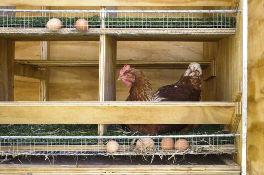 In this version of the design, the chicken can, if necessary, sit inside or walk in the fresh air.