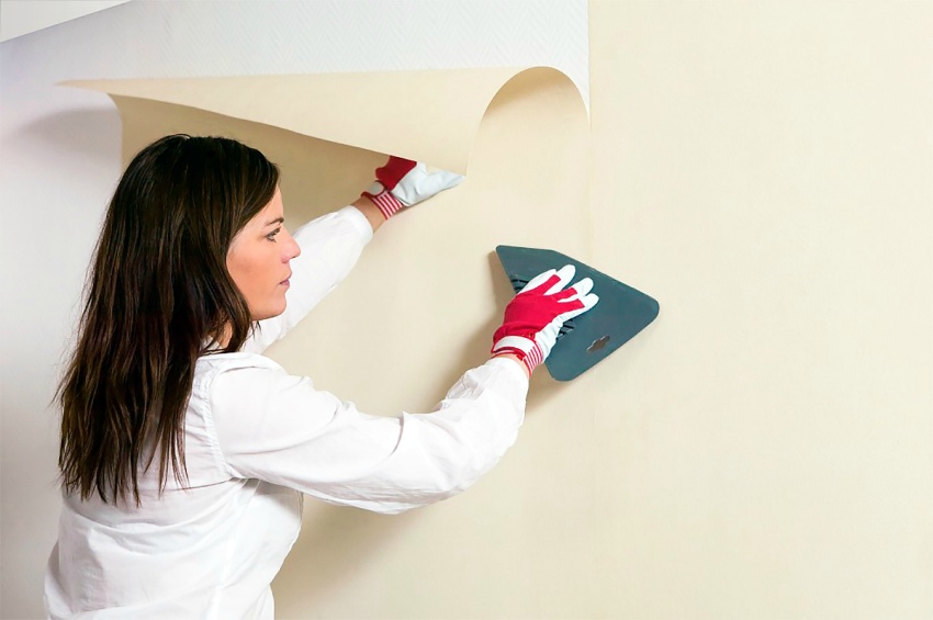 Situation three. The ceiling is stretched, the plinth is attached, the wallpaper is glued. The work is done carefully and carefully. The main thing is to properly cut off the upper edge of the wallpaper, that is, remove the excess. Be sure to use a special knife.