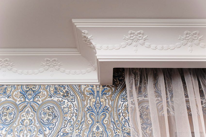 - Hide minor defects. Under them, the uneven edges of the wallpaper, paint unevenly applied to the walls (which is almost inevitable in the area of the junction of walls and ceiling) are not visible.