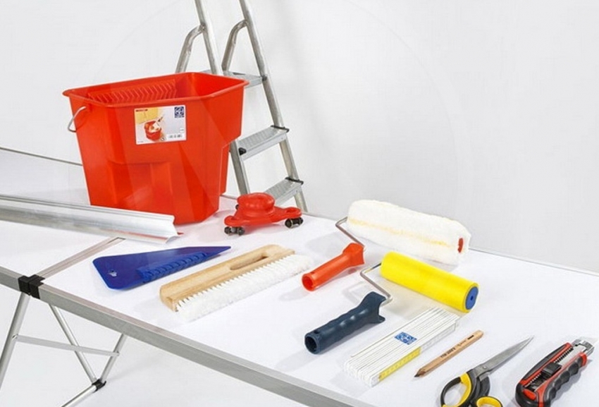 To complete the work, you will need a clerical knife, a ruler, a pencil, ladder and glue. After the preparatory work, the ceiling is marked with the determination of its center point. All windows and doors in the room should be closed to exclude the possibility of a draft. Further, the direct installation of products is carried out.