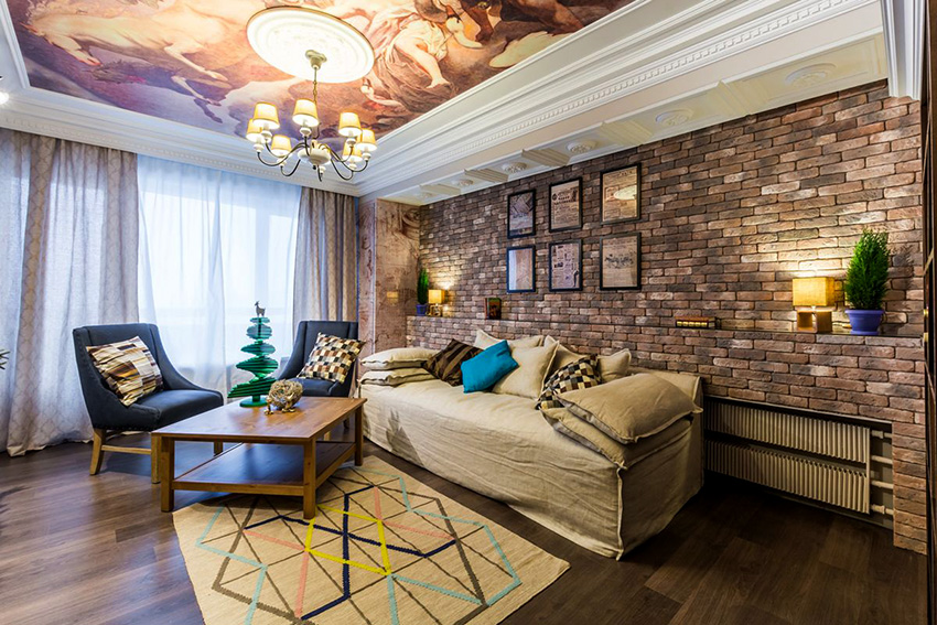 In classic expensive interiors, for example, baroque, it is popular to use canvas imitating velvet or marble. Thus, it will turn out with minimal costs to emphasize the high status of the owner. At the same time, not everyone is able to distinguish the canvas from the original surface.