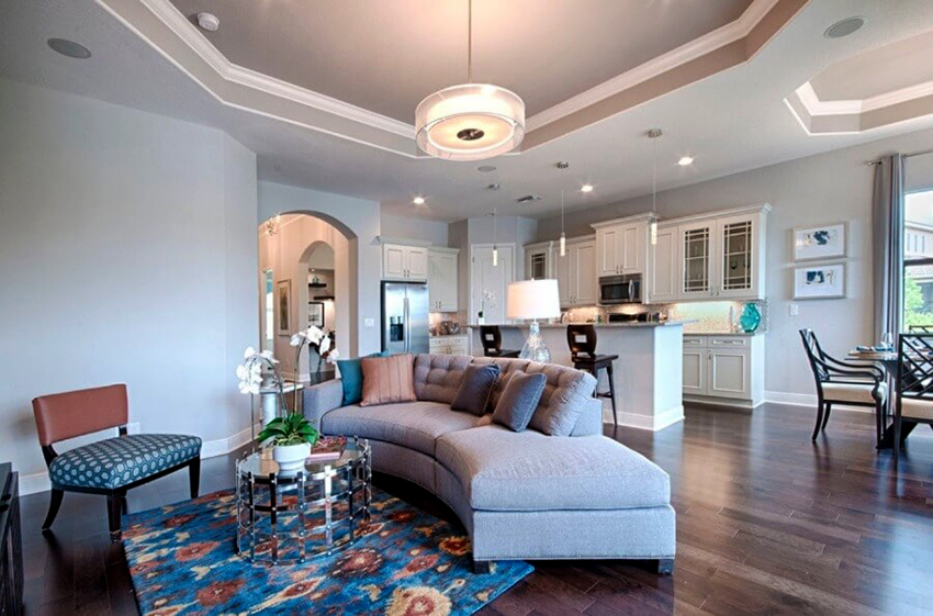 Divide stretch ceilings and, depending on the complexity of the design. They can be single or multi-level. The price of a simple shape (single-level) suspended ceiling will be significantly lower than the cost of a complex multi-level structure. At the same time, one should not think that if you do not make complex shapes, the ceiling will be boring. You can add mood surfaces by applying an unusual print or texture. The main advantages are quick installation and no need to create a complex design. In some cases, it is more relevant to install a complex multi-level structure, these include the following situations: