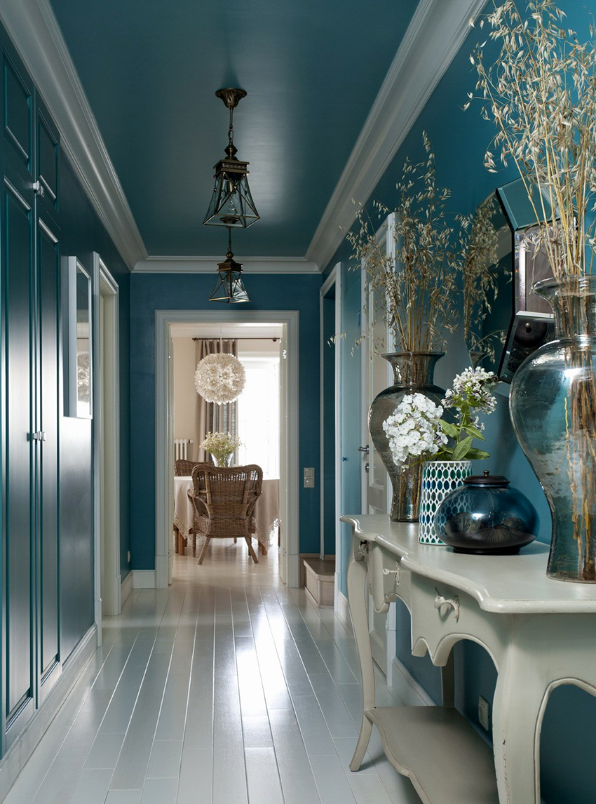 - Cold colors visually expand the space. For example, light green and blue visually raise the ceiling.