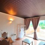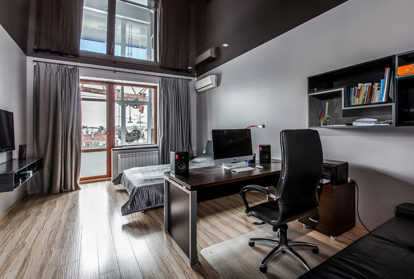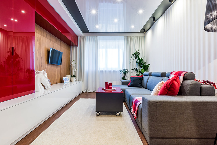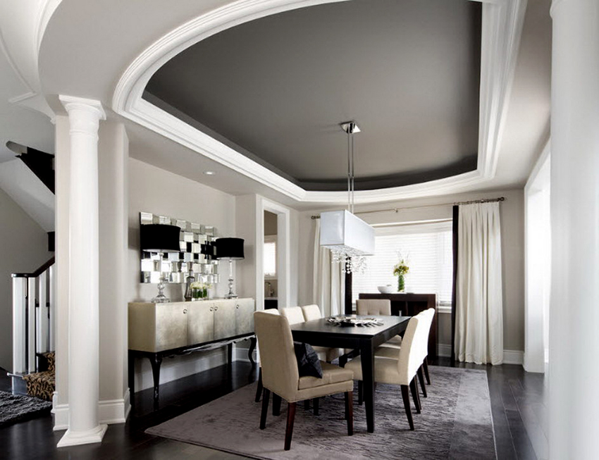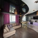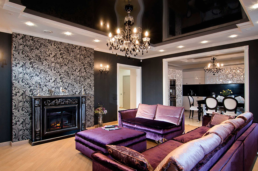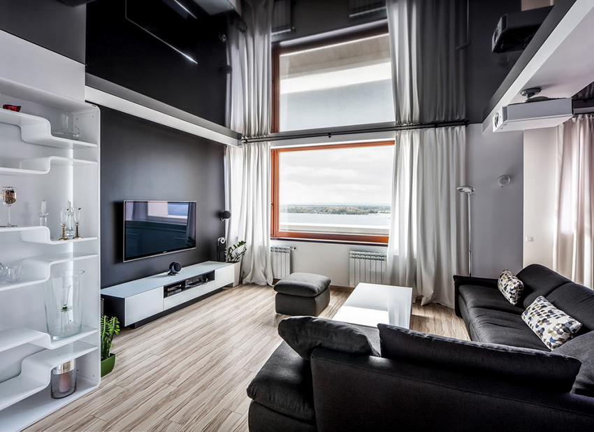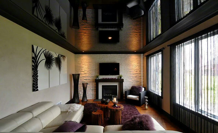 Design Tips! In an interior full of details and accessories, it is better to install stretch ceilings in a neutral color. Despite this, dark shades blend well with contrasting furnishings, bringing unusual features to the room. So, recently, when creating modern interiors, black, burgundy and dark blue stretch ceilings have become widespread.