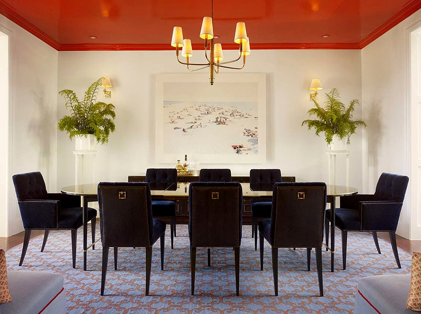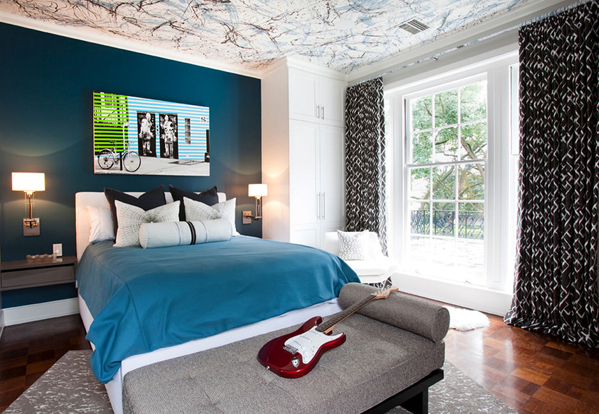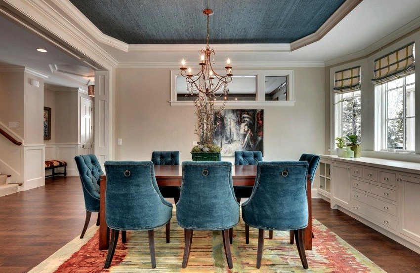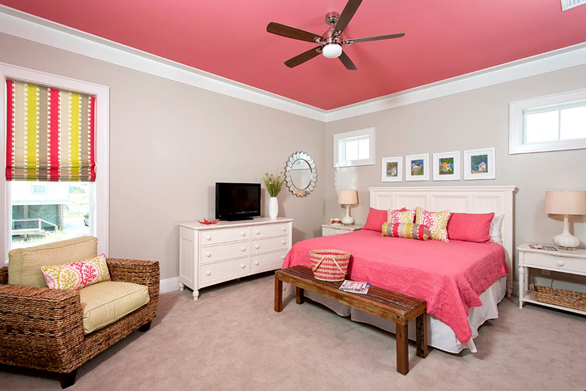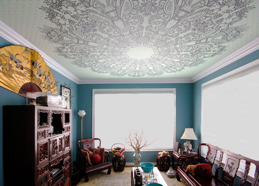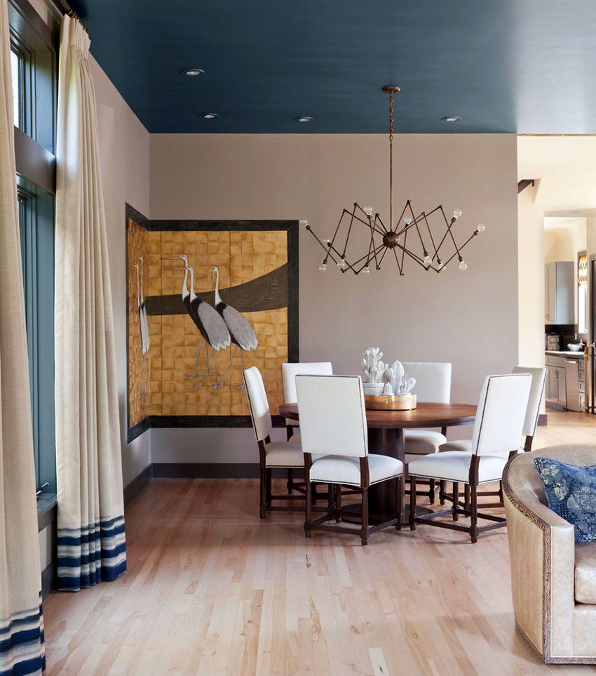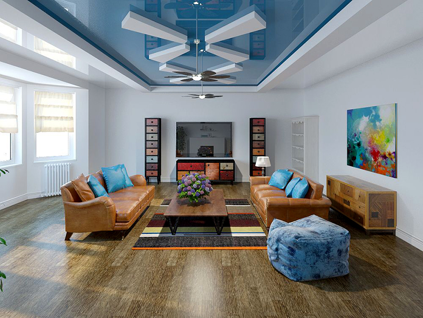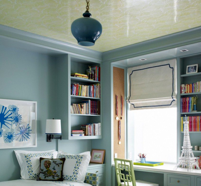 - Blue. Calms, relaxes, resembles the sea. The blue ceiling is ideal for bedrooms and lounges.
