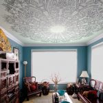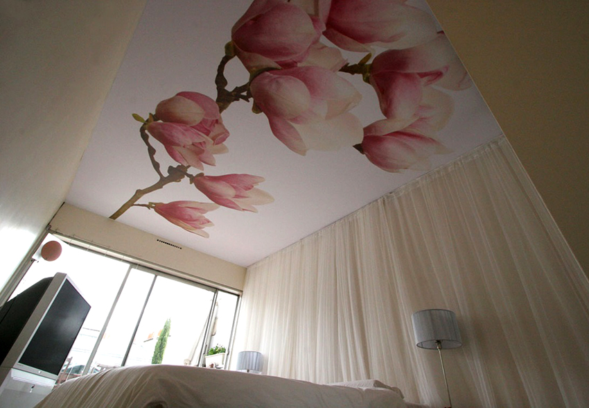 Installing a single-level ceiling does not mean at all that you will have to be content with a simple monochromatic design. The advantage of stretch ceilings is precisely that they can be supplemented with a variety of decorations. For example, after applying pictures to a stretch ceiling, it will turn out to transform the room beyond recognition, visually add volume and space to it.