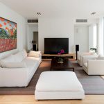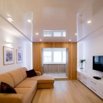 - Minimalism. Another modern style that does not accept excess. The ideal ceiling option in this case is a monochromatic glossy or matte canvas in a neutral shade. Most often it is white or silver.