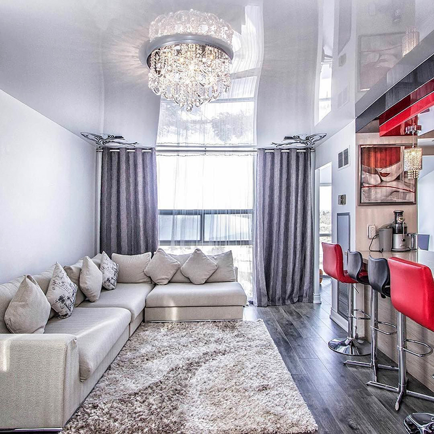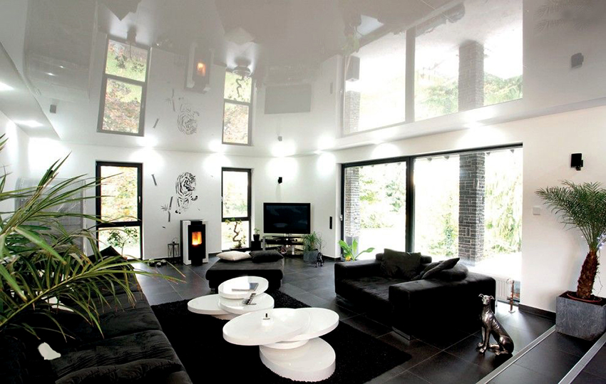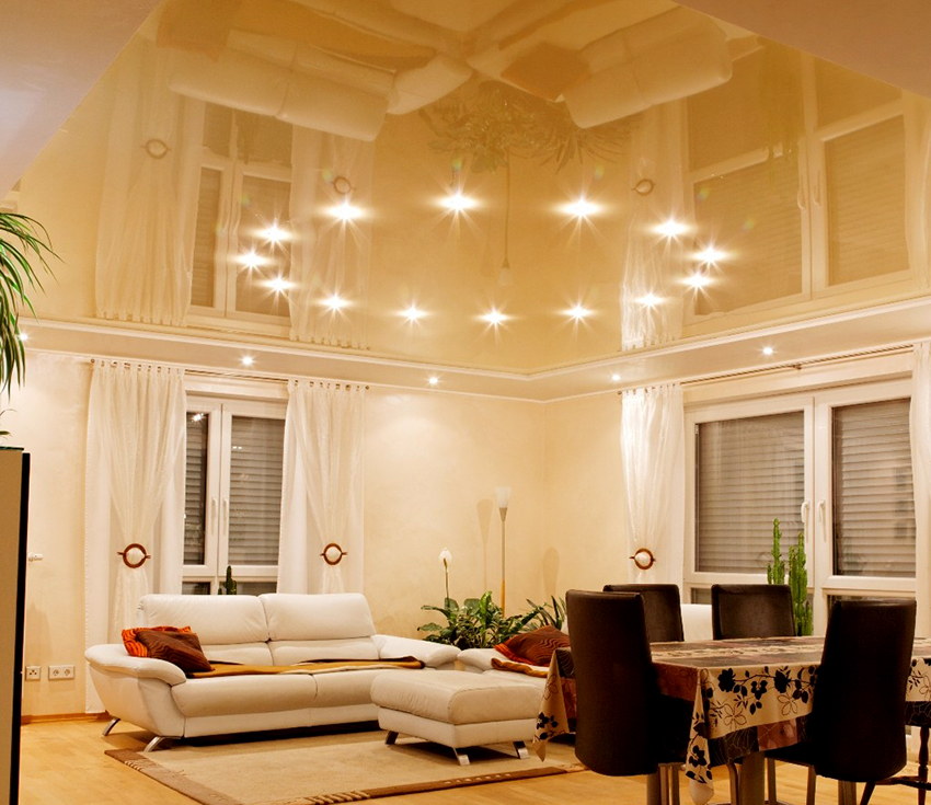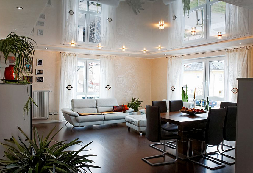 Stretch ceiling glossy: mirror shine and additional volume in the room