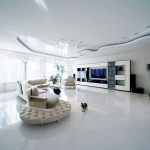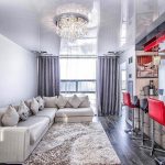 - High tech. An ultra-modern trend that prefers glossy PVC ceilings. In this case, it is appropriate to use a canvas with a metallic sheen or to make ceilings that have regular geometric shapes, there is no place for smooth lines.