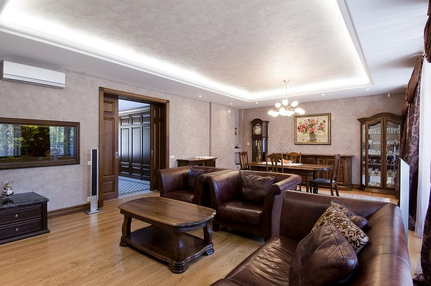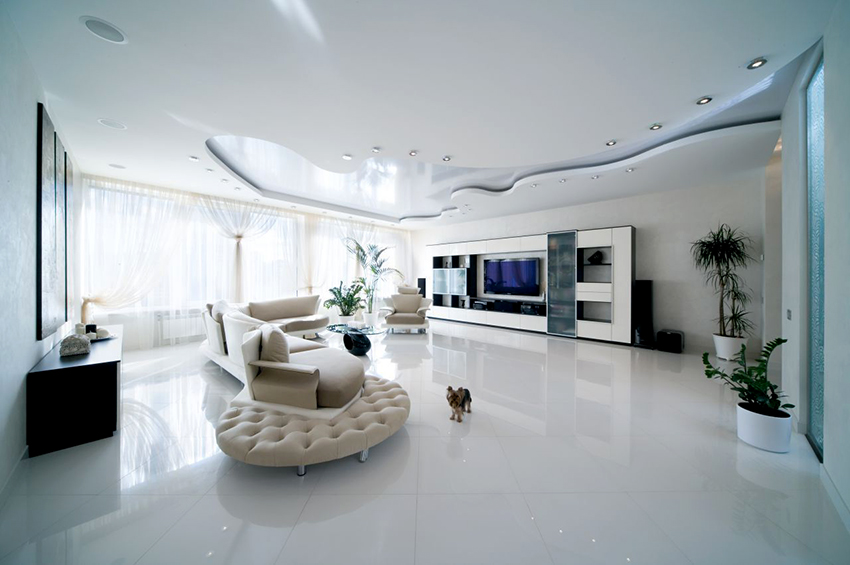 The choice of stretch ceiling depending on the style of the interior