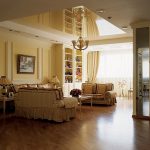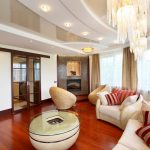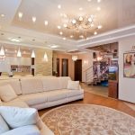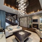When choosing a stretch ceiling in the hall, you can safely give preference to multi-level structures. In this room, it is appropriate to use the original photo printing, complemented by beautiful illumination using a variety of small lamps and a massive luxurious chandelier. The main thing is to correctly assess the surface area so as not to overdo it with lighting.When choosing a color, one should start from the general interior and the size of the room: