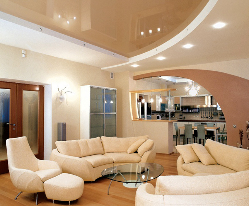 Most often in interiors you can find the following ceilings: