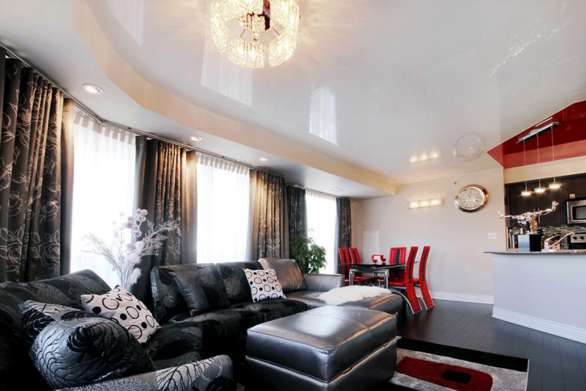 Stretch structures always look attractive and allow you to forget about repairs for a long time, which is the reason for the popularity of stretch ceilings. Videos showing the installation process prove that ceiling installation is a quick process that does not involve any dusty work. That is why the canvases are stretched at the final stage of the repair. Any room with a properly designed ceiling will look attractive, especially if you do not save on materials and deliberately choose the type of stretch fabric.