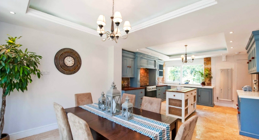 For decorating false ceilings in the kitchen, it is better to use a high-quality dye that does not absorb dirt and grease.