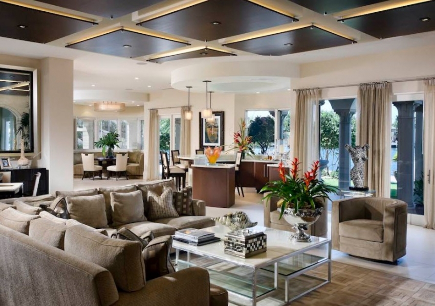 If there is enough height, then there are a huge number of design options for a two-level ceiling. To do this, you can use all sorts of original color solutions, as well as techniques with lighting. It is very convenient to carry out zoning of the room in this way, as well as, if necessary, change the visual perception of the room.