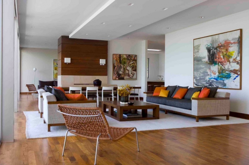 - photos of modern suspended ceilings in the living room demonstrate the beauty of using mirror inserts in the design. Of course, this option is absolutely not suitable for the kitchen and bathroom. Yes, and for the bedroom, such a solution can be called very specific, but in the hallway or living room such a solution can visually expand the space;