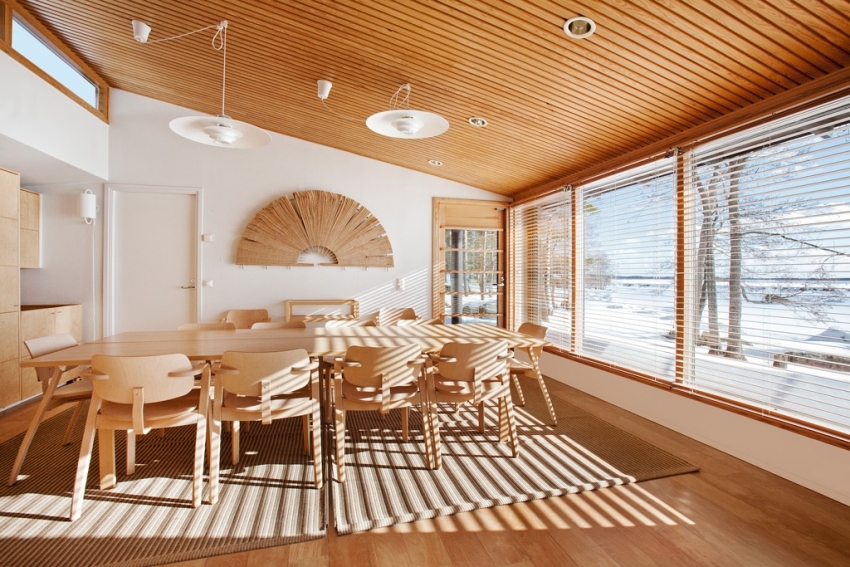 Separately, it is worth noting the decoration of the plasterboard ceiling with polystyrene beams, which does not go out of fashion for quite a long time. Due to the fact that the beams perfectly imitate other materials, in particular wood, this is an excellent solution for those who wish to decorate a room in the Scandinavian style or Provence.
