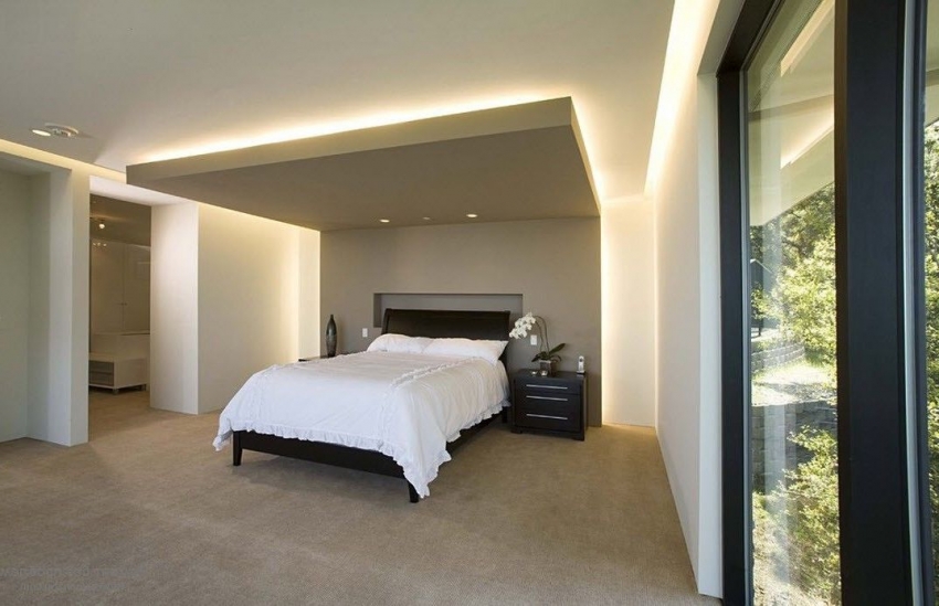 With the help of suspended ceilings with LED lighting, you can effectively highlight a certain area in the room space