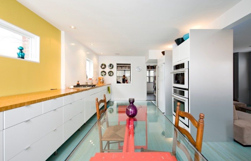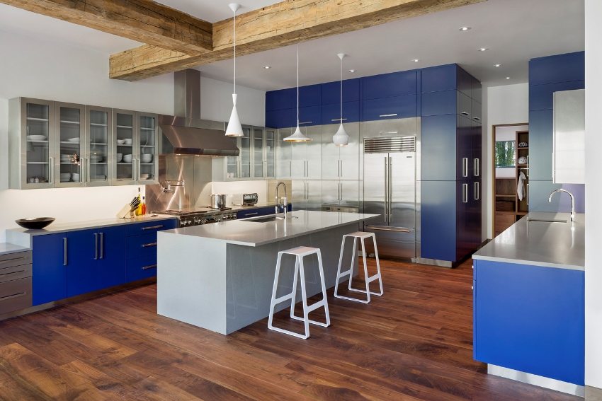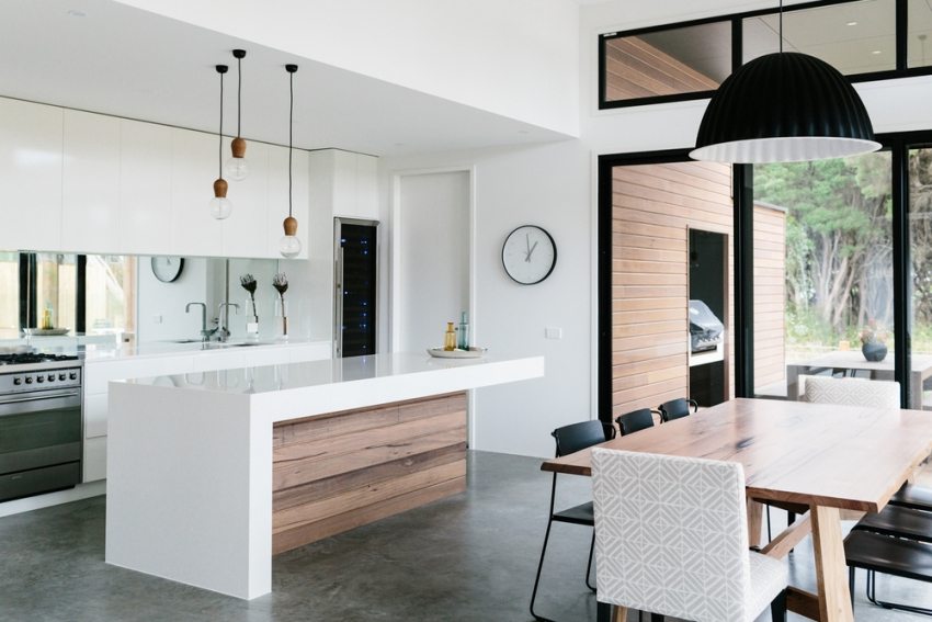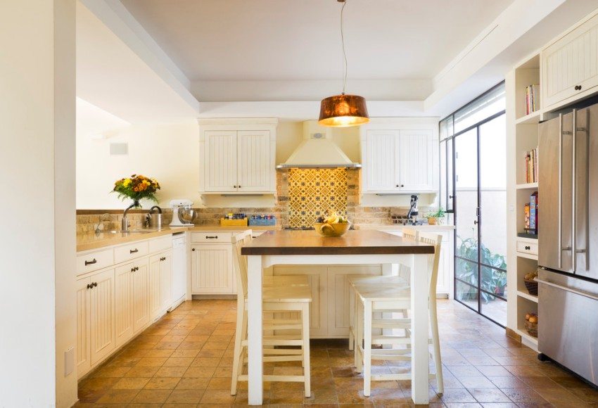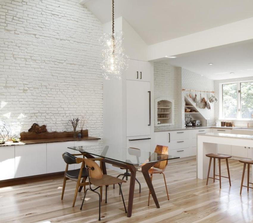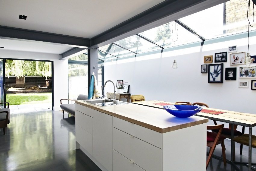 It is very important to correctly install the lighting fixtures, as well as to correctly determine their brightness. The work area should be well lit, but calm diffused lighting would be more appropriate above the dining table.