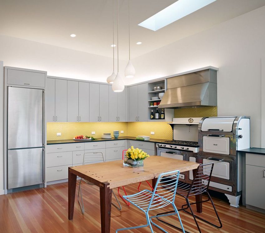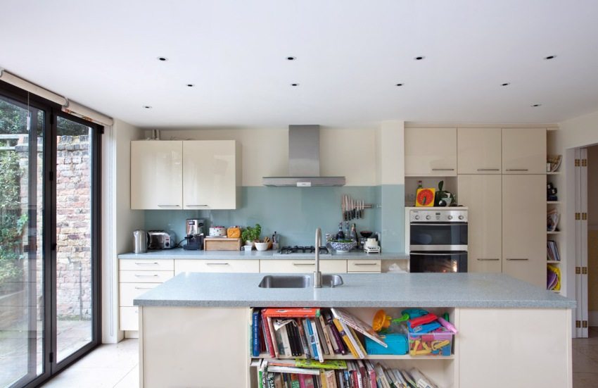 Suspended ceilings allow the use of recessed lights, giving any kitchen a modern look and allowing space to be divided into functional areas.
