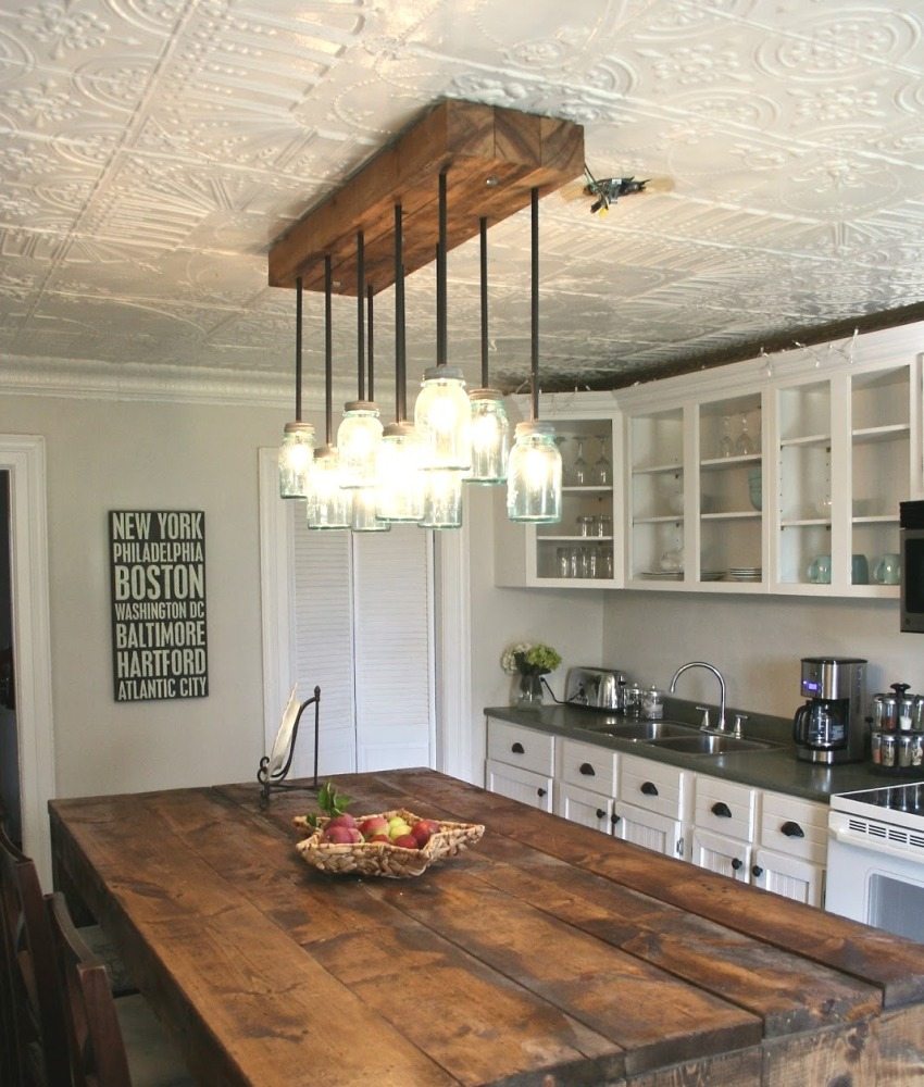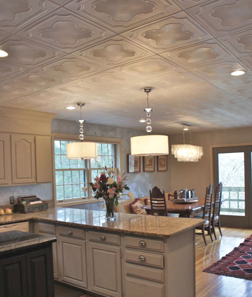 Combination in decoration ceiling in the kitchen foam tiles and other materials