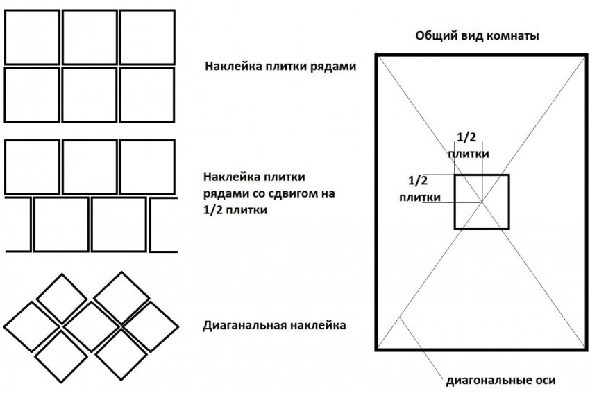 - We make the ceiling marking correctly. To do this, draw diagonals and mark their intersection. Next, we connect the midpoints of opposite sides with segments. All the resulting lines should intersect at one point. This is the very center of the room. Care must be taken to chandelier was right here, otherwise the ceiling will look ugly. Through the central point, the perpendicular lines are beaten off with a paint cord, along which the first rows of tiles are oriented.