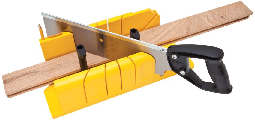 - first of all, the element that you want to cut must be inserted into the miter box on the left side and pressed against the side. In this case, the part that will be located near the ceiling should be located at the bottom of the miter box;