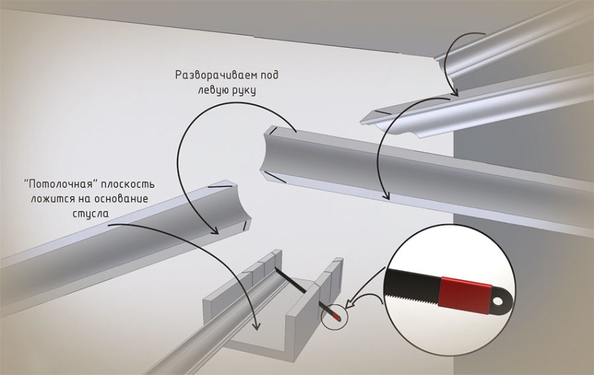 As you can see, there is nothing difficult in cutting profiles on your own, and it is quite possible to do everything on your own, without resorting to anyone's help. Moreover, as a visual material, you can always use the video on how to make a corner on the ceiling plinth.