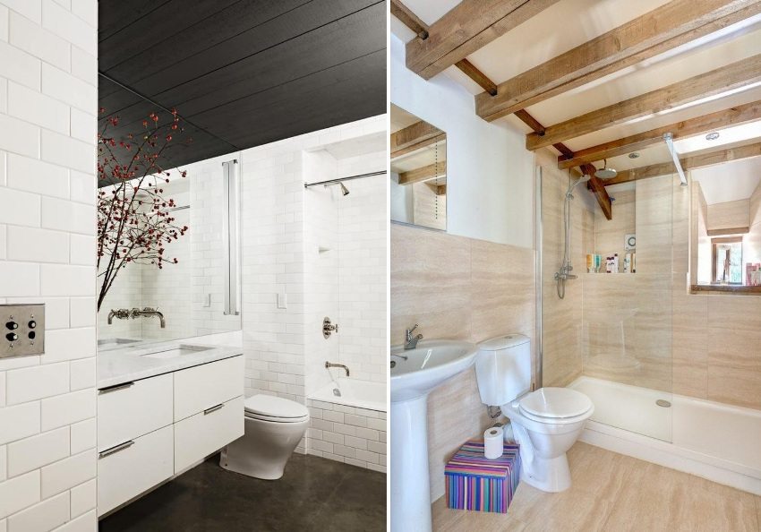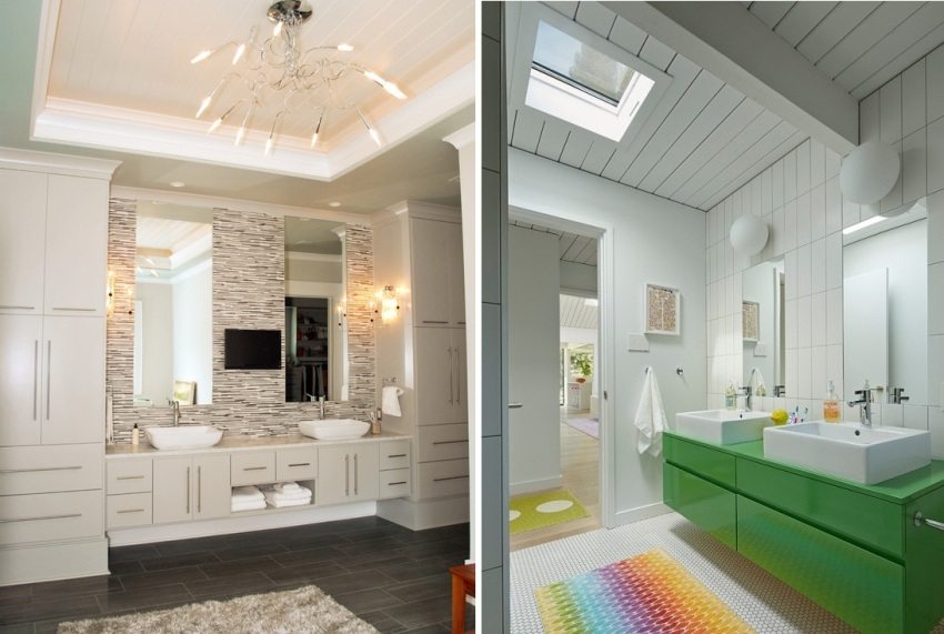 The room we are considering has definitely the wettest air in the entire apartment, so the materials that should be used in its decoration must have excellent moisture resistance. Even a stream of water directed from the shower should not cause any damage to the ceiling surface. Ideally, even if a pipe leak from the neighbors on top does not disrupt its appearance.