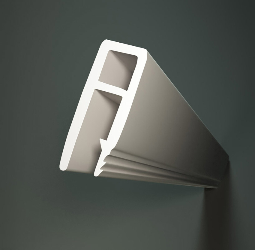 Thanks to the special shape of the profile, it is possible to wind and stretch the canvas around the entire perimeter of the room