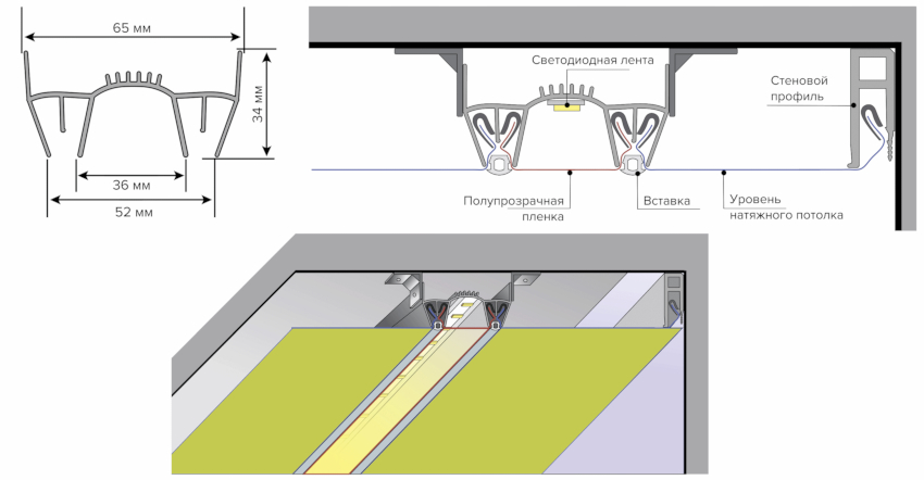 It is also worth noting that it is quite difficult to dismantle a ceiling mounted using an aluminum profile.