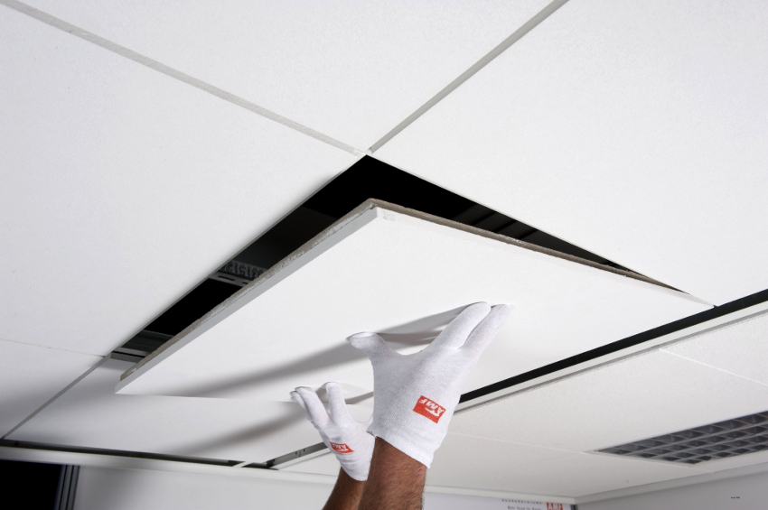 - Modular. The ceiling is divided into individual elements, which can be square or rectangular.