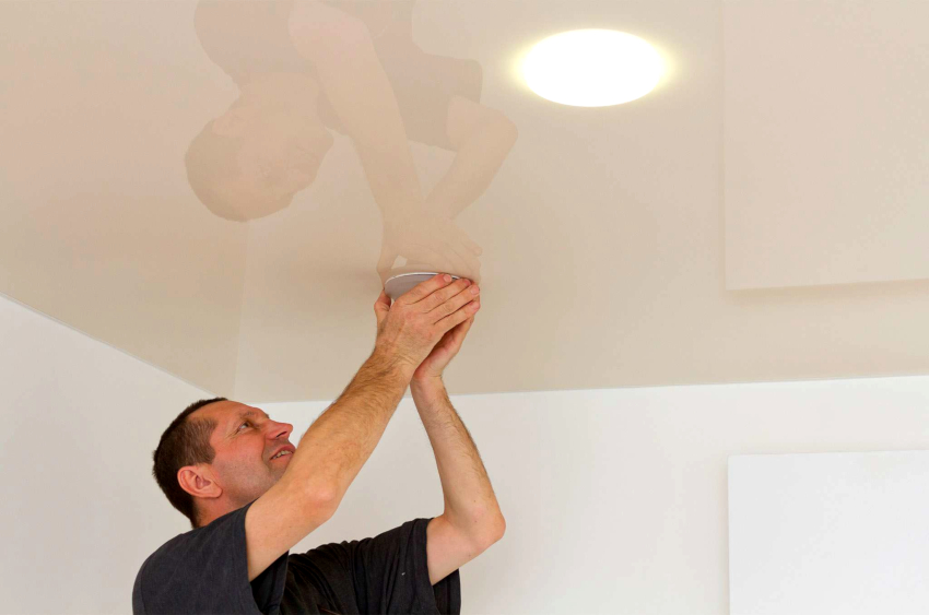 - Do not use lamps that are too powerful: they can warp and lose color the stretch fabric. The power of incandescent lamps should not exceed 60 W, halogen lamps - 25 W. LED lighting is the most suitable for tension structures.