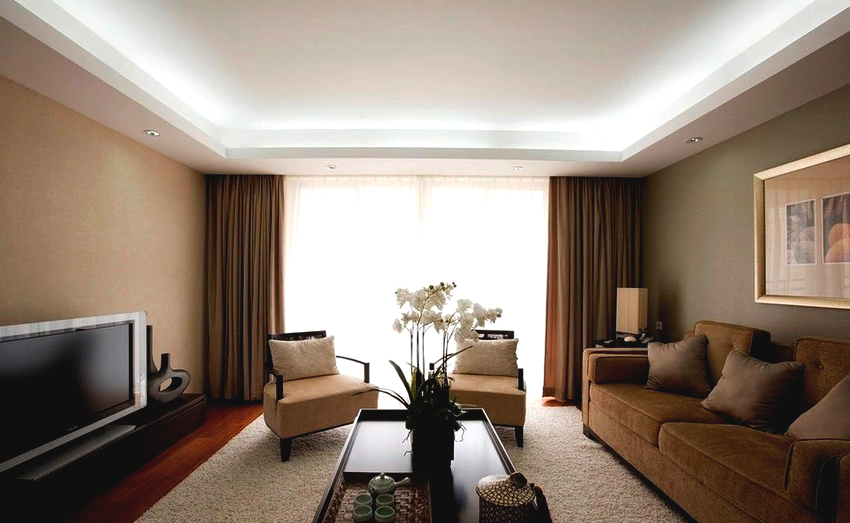 If the height of the ceiling allows, it is quite acceptable to experiment a little and mount a black satin stretch ceiling. In this case, horizontal walls cannot be made too dark, so as not to turn even a spacious room into a closed box. Rules for choosing a shade for a stretch fabric: