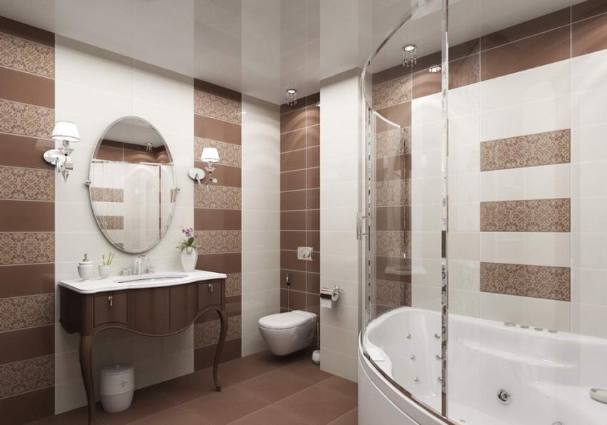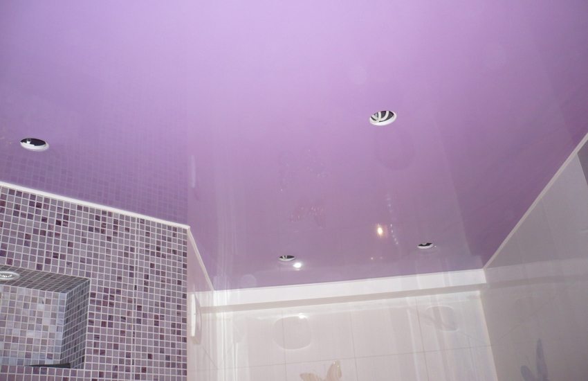 The bathroom is probably the only room where you can't really walk around because of its small area. It is enough to purchase 4-8 spotlights for stretch ceilings. Photos of such rooms show different ways of arranging lighting elements.