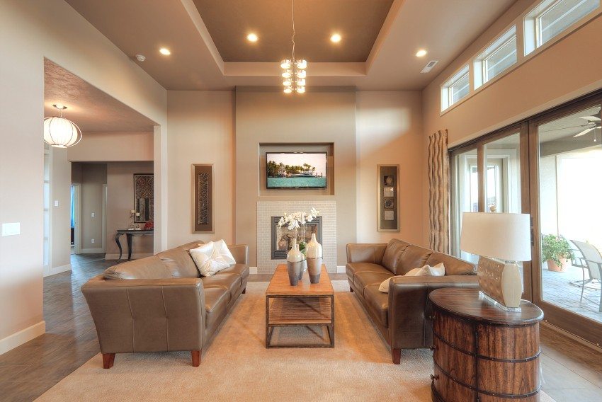 The lighting of a hall or a room for receiving guests also has some features. In such rooms, a multi-lamp is used as a central light source. chandelier... Since it is installed in the middle of the room, the corners remain in the shade. The location of 3-4 spotlights in each corner of the ceiling will help illuminate the entire Hall completely.