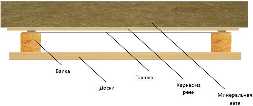 The scheme of insulation of ceilings with mineral wool: the use of cotton wool "Ursa"