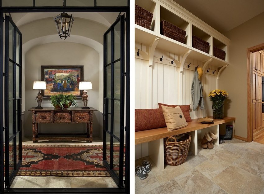 - additionally in the hallway there may be a table or small shelves on which it is convenient to place all sorts of little things or put keys and bills.