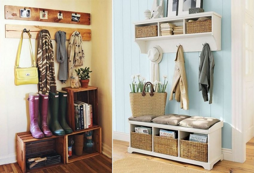 Shelves or hooks can also be used instead of a cabinet. Hooks take up the smallest space and, as a rule, are used only when furnishing the hallway is not at all possible.