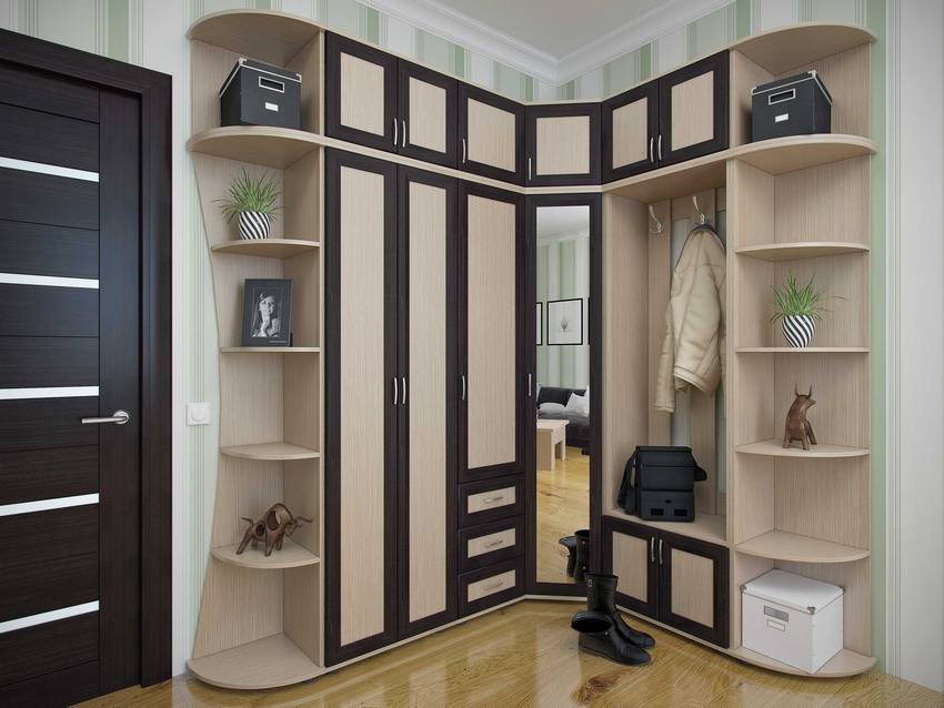 - rounded corners are preferred over sharp ones. Since the structure will occupy the entire corner, and this is a significant part of the hallway area, it is better if its corners are rounded. This will not only improve its appearance, allowing it to look organically in the interior, but also allow you to move more freely around the apartment without clinging to protruding corners.