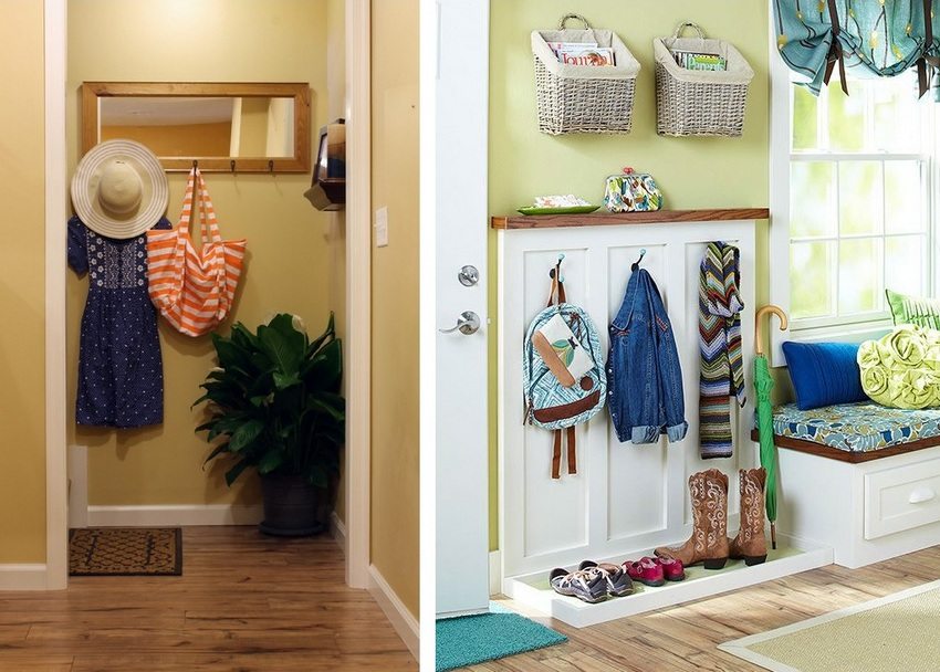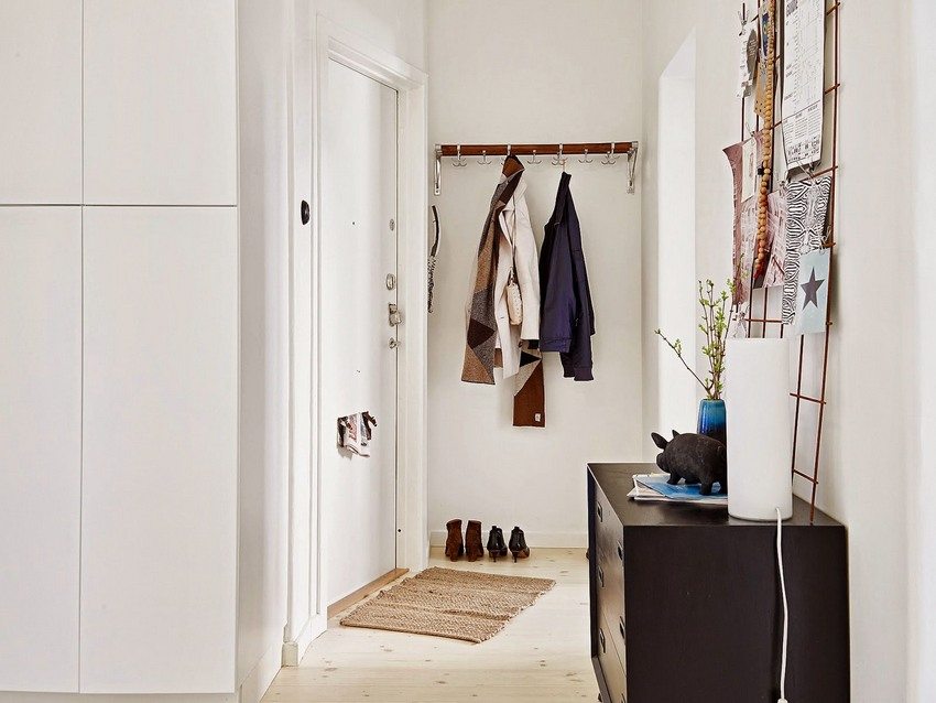 Useful advice! If the area of your hallway does not allow you to place any furniture, limit yourself to hooks for outerwear and a shelf for shoes.