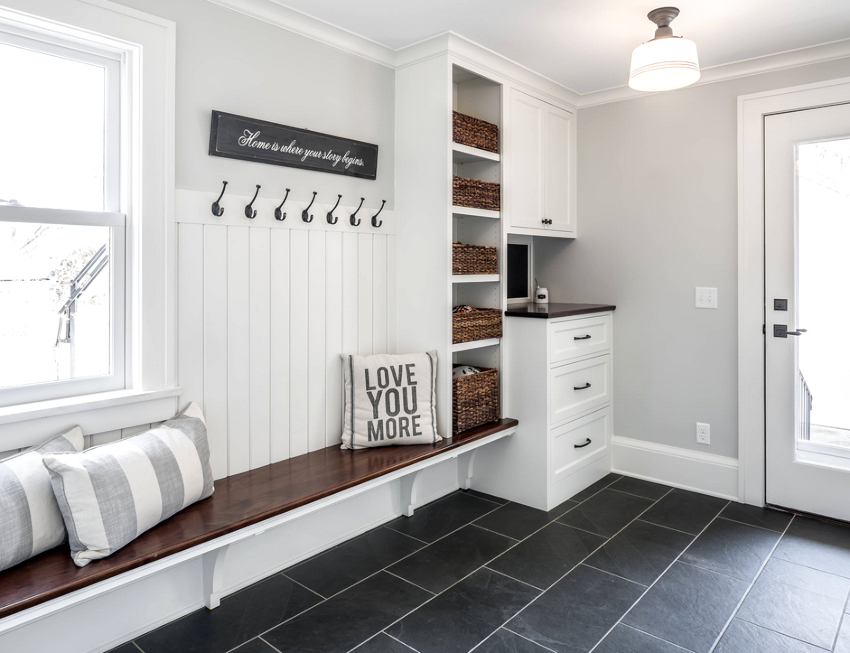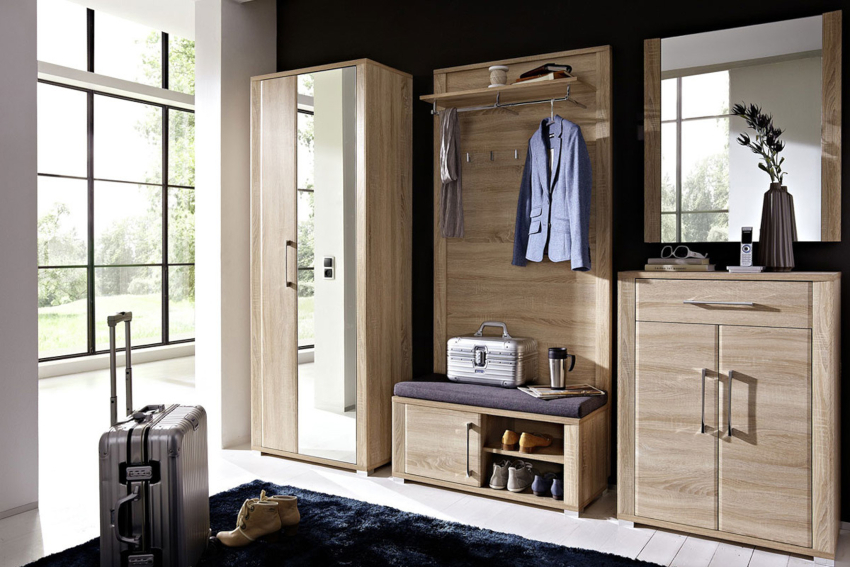 First of all, you need to determine what furniture will be installed in the hallway. It is imperative to provide a place for storing things: outerwear and shoes. A mirror with a chest of drawers would be useful, which can be used to place decor, accessories, a telephone, the press, as well as holders for umbrellas and a housekeeper. The hallway will also need a small seat. It can be a small sofa or bench, chair or armchair. These interior items will greatly simplify the shoe process.