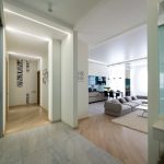 The design of these rooms primarily requires the elimination of the geometric imperfections of the room. So, it is recommended to make the hallway visually wider than it really is. To do this, it is necessary to zoning the corridor, allocating space for furniture intended for storing clothes and shoes, while leaving free space.