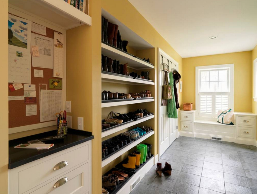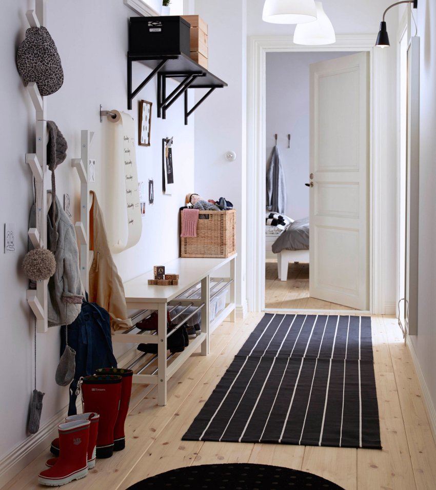 Since there is very little space in a narrow hallway, clutter should be avoided. It is better to prefer closed furniture than open hangers. Such designs will help maintain order in the room. Photos of beautiful shoe racks in a narrow hallway will tell you how interesting and rational to equip the area allotted for furniture in the corridor.