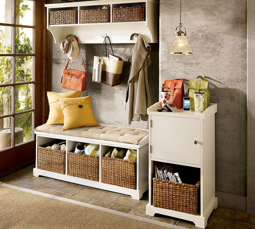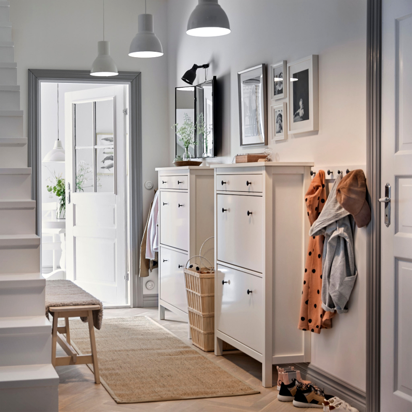 Gloves, hats, scarves and other small items can be stored in the dresser. For shoes, a shoe rack or shoe rack is suitable, in extreme cases - a special shelf. All this furniture will help maintain order in the hallway.