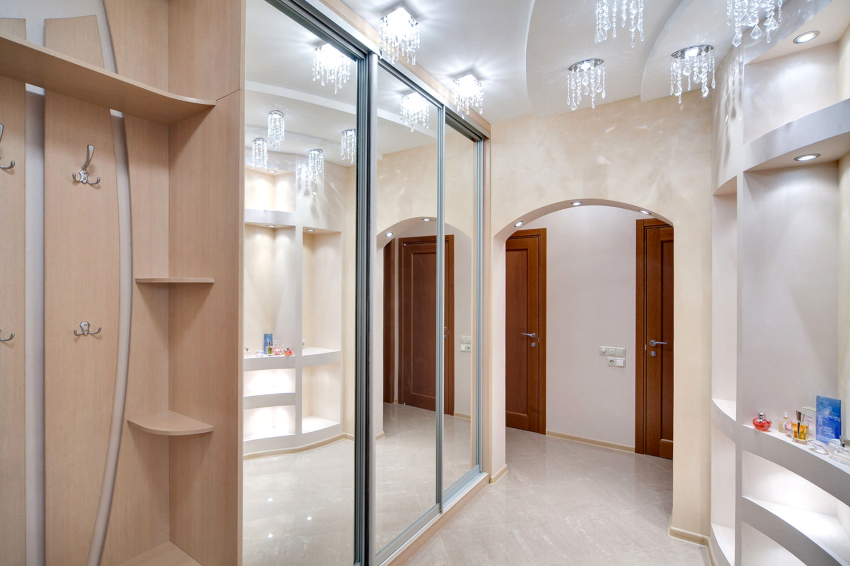 Another advantage of wardrobes is the ability to install a large mirror on the door of the product. This saves money on the purchase of a separate mirror. In addition, mirror structures on the doors can visually increase the space of the corridor. This is especially true for small hallways.