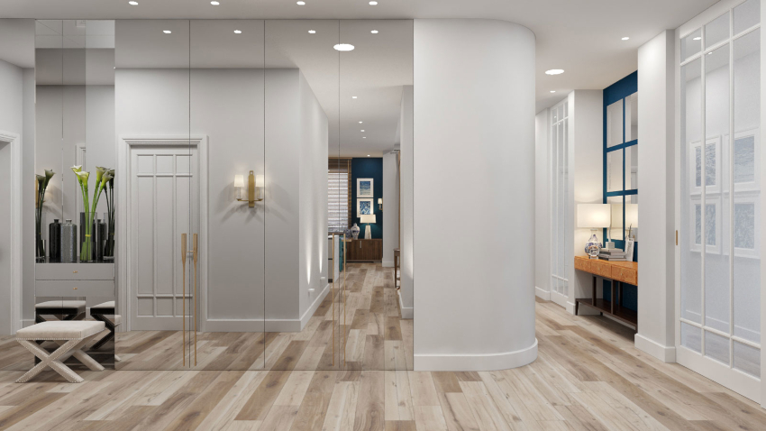 - oak, walnut, plum and beech are classic colors that are great for corridors of any size and layout;