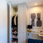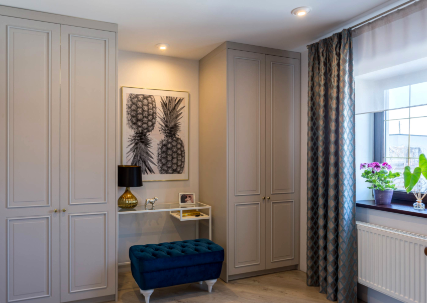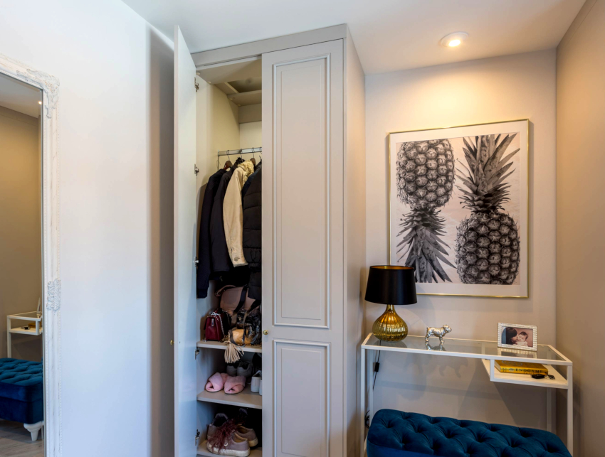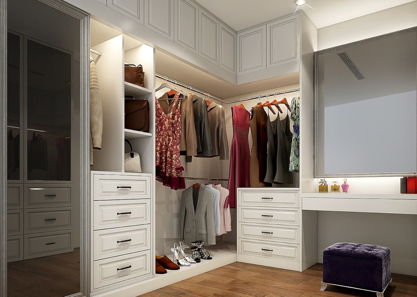- spaciousness - clothes, shoes, accessories and even household appliances are calmly placed in such a closet;