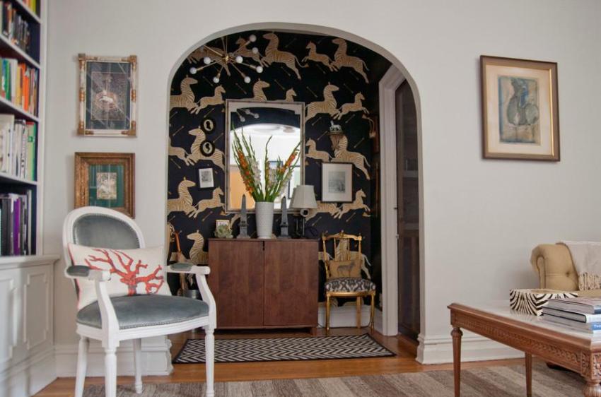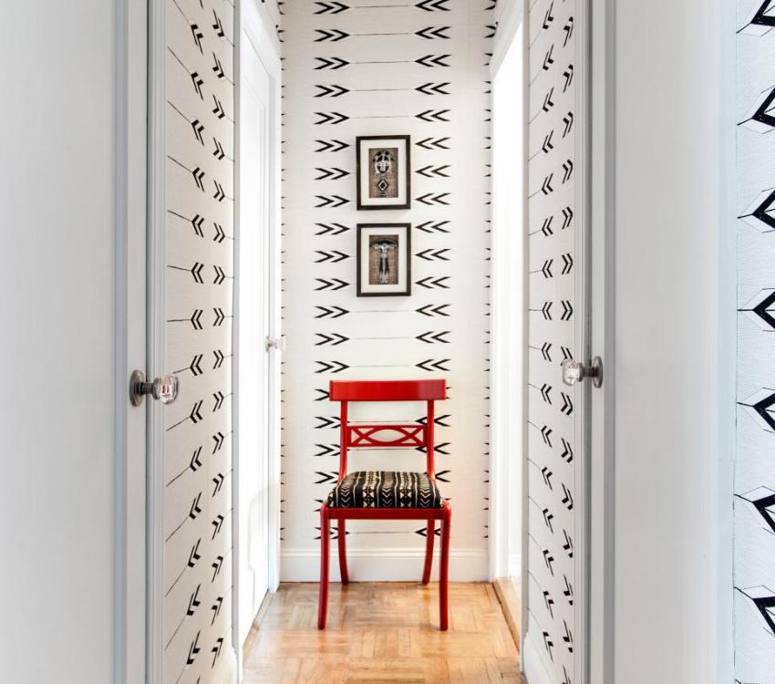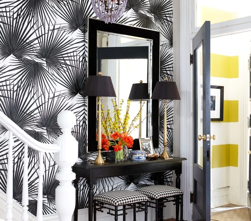 Original black and white wallpaper in the decoration of the corridor