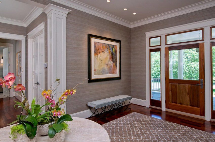 In the hallway, they take off their outerwear, leave wet umbrellas, lean on the wall to put on their shoes. Hallway wallpaper in the apartment should be durable, resistant to dirt and moisture and should not be afraid of regular cleaning.